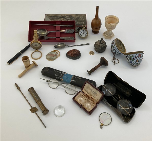 Scatola contenente numerosi oggetti di fatture, usi ed epoche differenti (difet