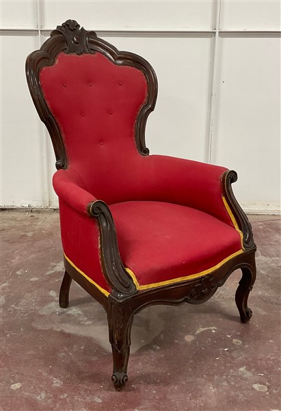 Lot 1657 | Poltrona in legno intagliato, montanti scanalati e piedi terminanti a ricciolo,