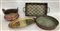 Lotto composto da un vaso e un sottovaso in rame, un vassoio ovale in metallo a