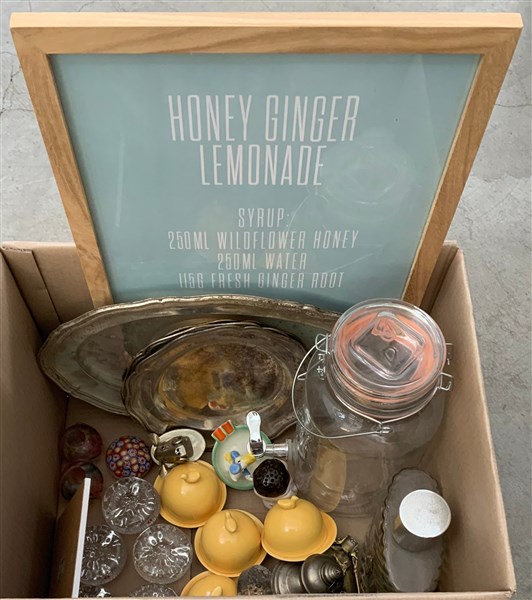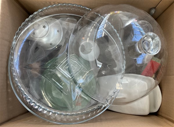 Lotto di tre cartoni contenenti numerosi oggetti per la tavola ed altri usi (di