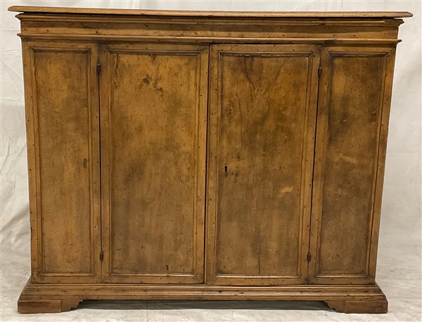 Credenza in legno con fronte a due ante, piedi intagliati a mensola.Toscana, secolo XVIII (cm 159x130x51,5) (difetti e restauri)