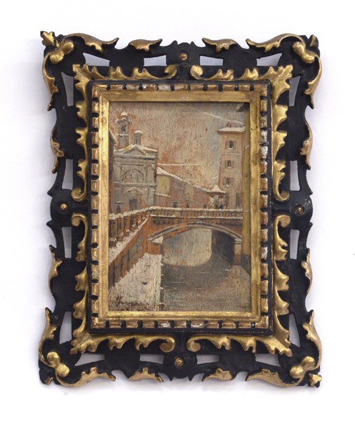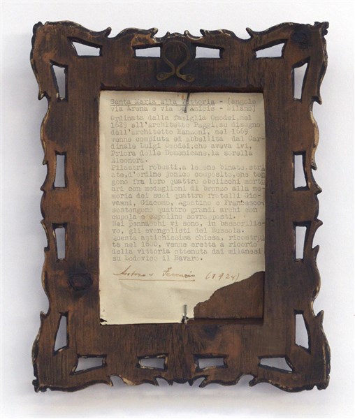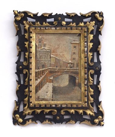 "Scorcio di Milano con chiesa di San Maria alla Vittoria" olio su compensato (cm 14,5x10) firmato e datato 1924 in basso a sinistra, in cornice