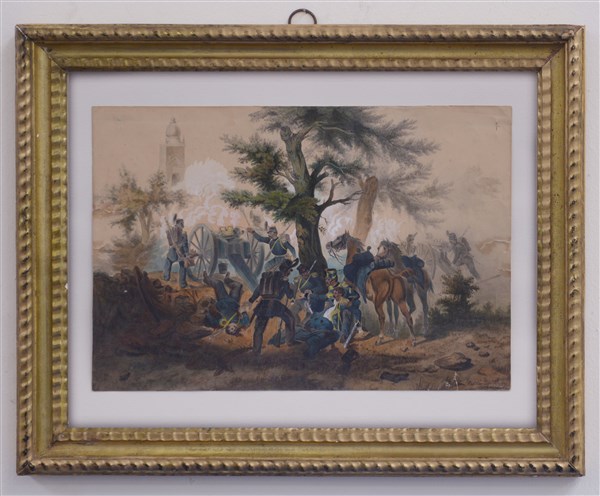 Ignoto, "Scena di Battaglia" acquerello (cm 30,5x44) firmato in basso a destra
