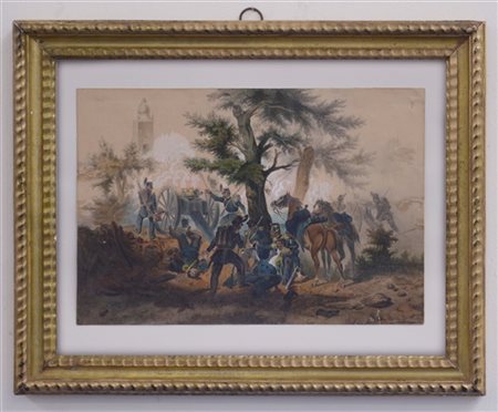 Ignoto, "Scena di Battaglia" acquerello (cm 30,5x44) firmato in basso a destra "Tosati", in cornice