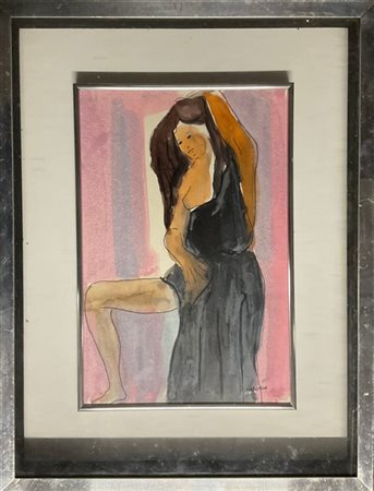 Firma indecifrata "Figura femminile" tecnica mista su carta (cm 30x20) firmata in basso a destra, in cornice