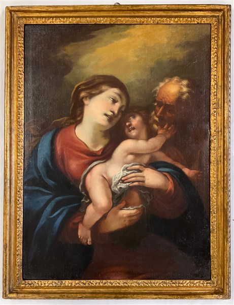 Scuola della fine del secolo XVII/ inizio secolo XVIII, "Sacra Famiglia", olio su tela (103x75). In cornice (difetti)