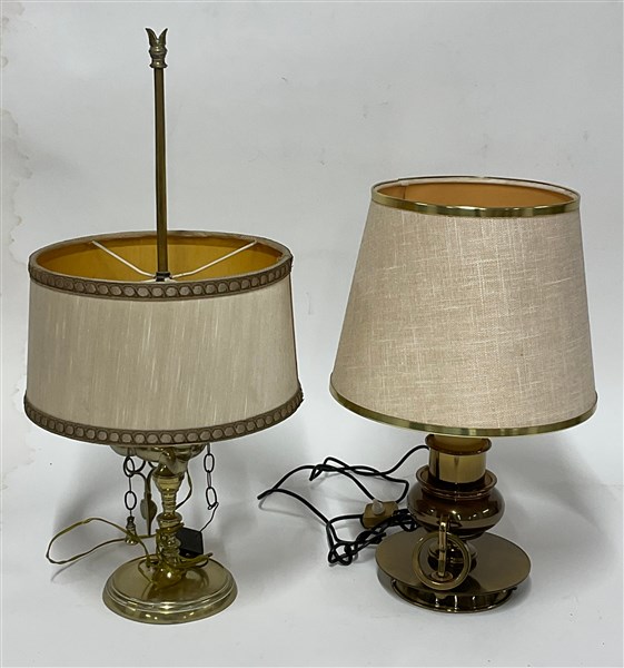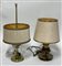 Lotto composto da un abat-jour in ottone con corpo tornito ed una lampada fiorentina in bronzo montata a luce elettrica (h max cm 58)