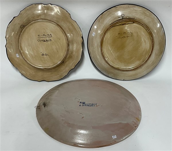 Manifatture diverse, lotto composto da tre piatti da parete, un piccolo vassoio