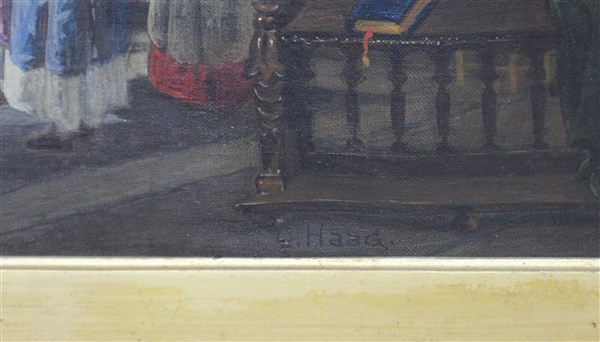 E. Haag "Interno di chiesa" olio su tela (cm 68x48) Firmato in basso a destra. I