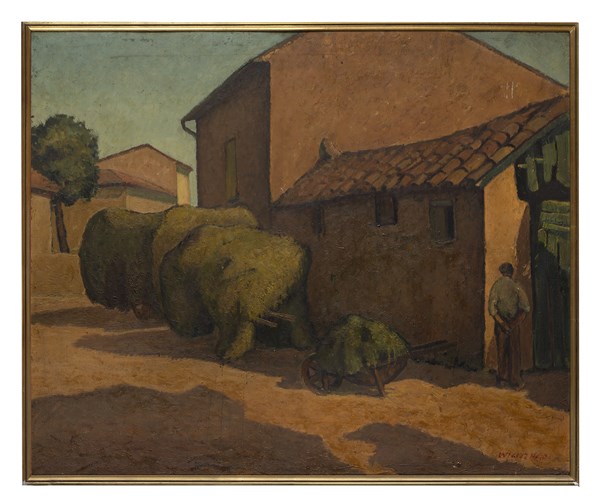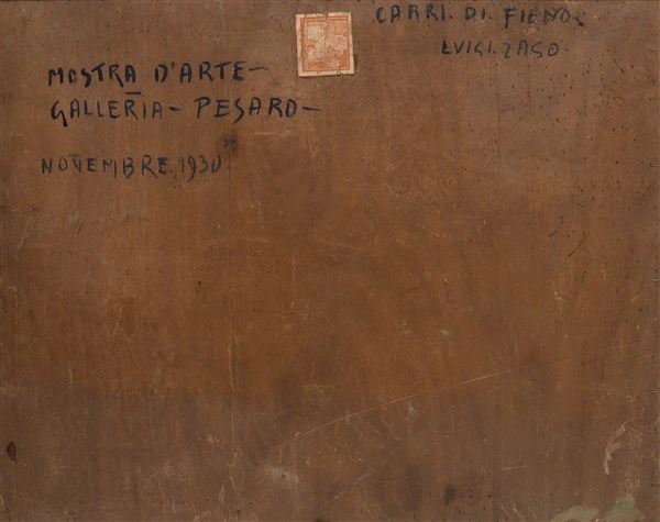 Luigi Zago "Carri di fieno" Novembre 1930 olio su compensato (cm 80x100) Firmato