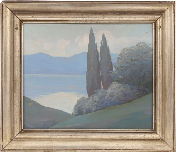 "Mattino armonie, Lago Maggiore" olio su tavola (cm 42x52) Firmato in basso a destra. Al retro: firmato e titolato. In cornice (difetti)
