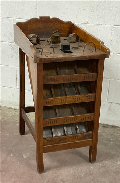Gioco con struttura in legno, dotata di scivoli e buche, archetti in metallo, girandola in ferro e figura di rospo centrale a tutto tondo. Secolo XIX (cm 45x90x57) (difetti e mancanze)