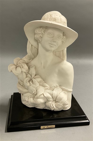 Vittorio Tessaro Busto di donna con cappello e fiori, scultura in ceramica firma