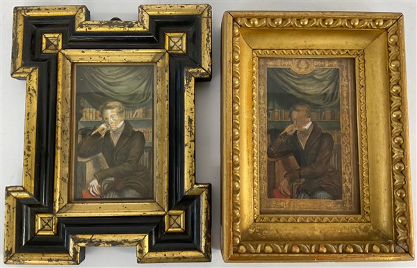 Scuola del secolo XIX "Ritratto del conte Alessandro Piovene Porto Godi" due acquerelli su carta. In cornici coeve (misure differenti) (lievi difetti)