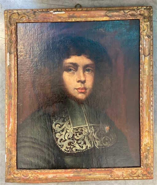 Ignoto, secolo XVII "Fanciullo" olio su tela (cm 46x38) In cornice in legno intagliato e dorato del secolo XVIII (difetti e restauri)