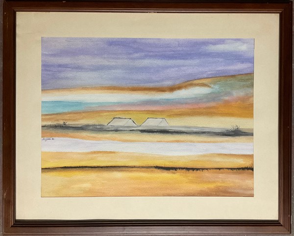 Firma indecifrata "Tende nel deserto" tecnica mista su carta (cm 30x40) firmata a sinistra al centro, in cornice