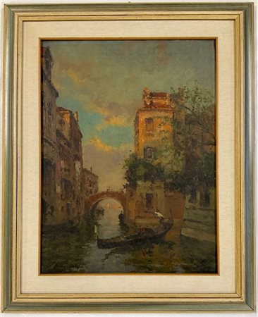 Firma indecifrata "Canale veneziano" olio su tela (cm 62x46) Firmato in basso a sinistra. In cornice