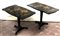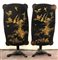 Coppia di tavolini a vela in legno ebanizzato decorato a dorature a rami fiorit