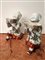 Coppia di sculture in porcellana policroma raffiguranti figura di cinese ingino