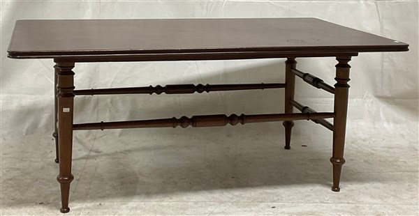 Tavolino da salotto in legno con gambe e traverse tornite (cm 105x45x66) (difetti)