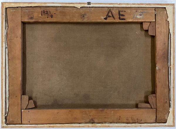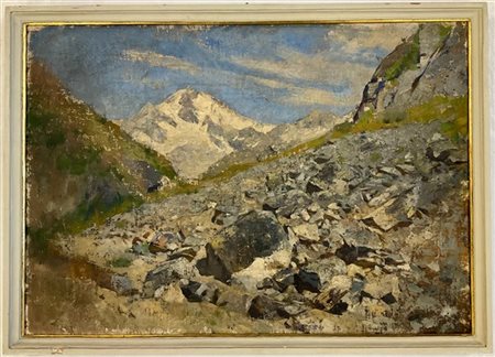 "Paesaggio di montagna" olio su tela (cm 50x70) Al retro: titolato, firmato e datato 1894 sul telaio. in cornice (difetti)