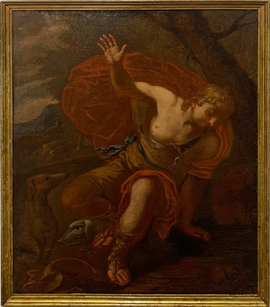 Ignoto antico dipinto, "Narciso alla fonte" olio su tela (cm 82x65)