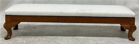 Panchetto in legno con piedi sagomati, rivestito in tessuto bianco (cm 126x27x33)