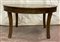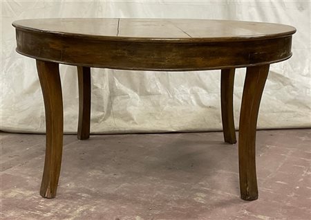 Tavolo lastronato con piano di forma circolare, gambe mosse (d cm 145; h cm 79) (difetti)