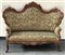 Divano a tre posti di forma mossa in legno intagliato, seduta e schienale imbot