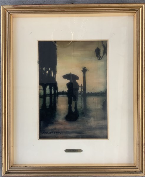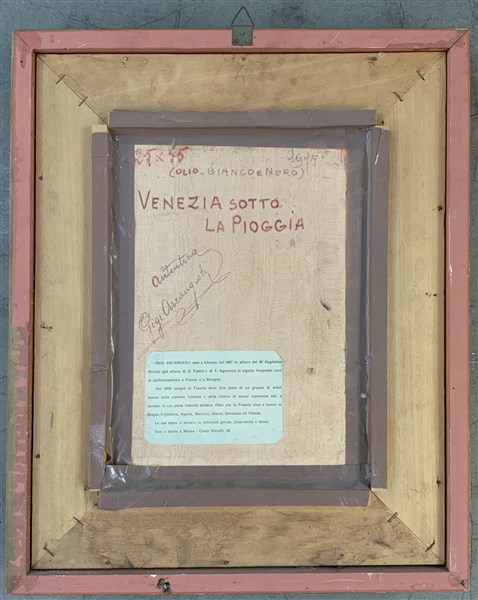 Gigi Arcangioli "Venezia sotto la pioggia" 1975, olio su compensato (cm 36,5x25,