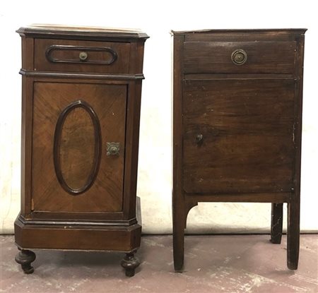 Due comodini in legno a un'anta e un cassetto. Secolo XIX (difetti)