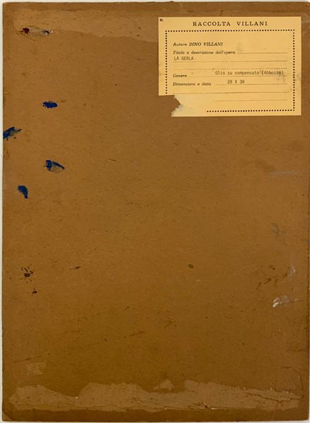 Dino Villani "La gerla" olio su cartoncino, (cm 36,5x27), firmato in basso a des