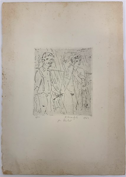 "Il pittore e la modella" 1963, acquaforte (foglio cm 45x32, lastra cm 18x15) firmata, datata, numerata es. 6/10 e dedicata in basso a matita