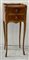 Comodino da centro di forma mossa lastronato a due cassetti decorata con guarni