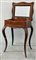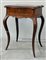 Tavolino da lavoro di forma mossa con piano intarsiato in legni vari a strument