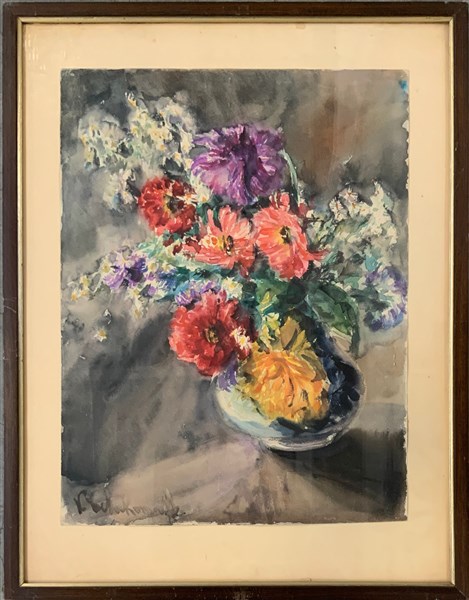 Firma Indecifrata “Vaso con fiori” acquarello su carta, (cm. 51 x 38), firmato