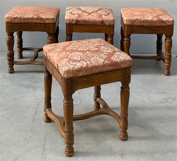 Lotto composto d due coppie di antichi sgabellicon gmbe tornite riunite da trav