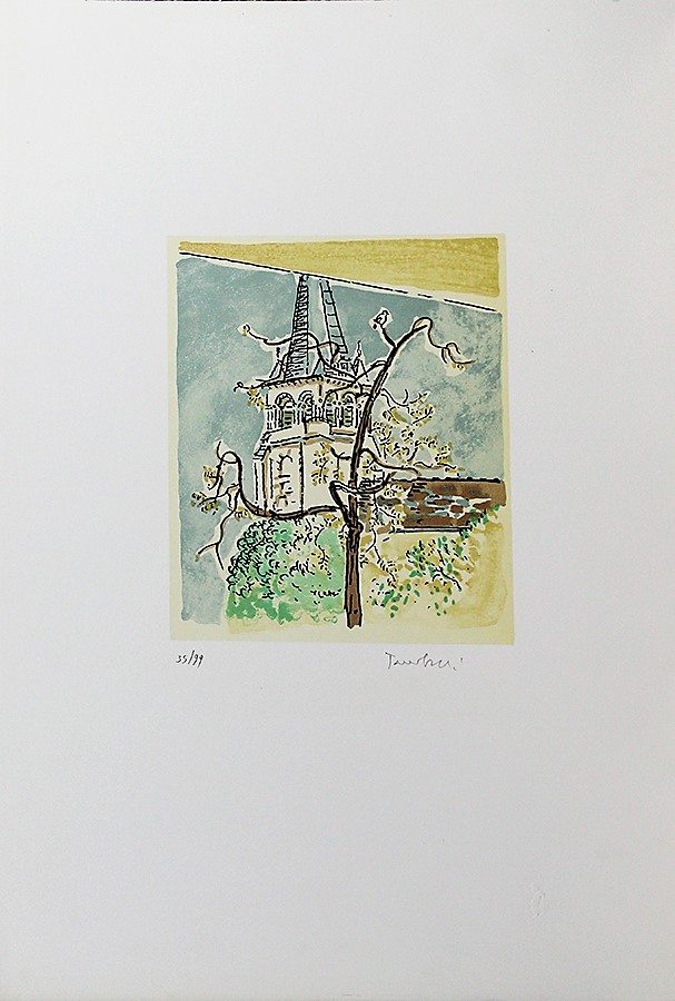 ORFEO TAMBURI, Senza titolo, Litografia colorata a mano, Dim. 50x35, Al verso: esemplare N° 35/99 in basso a a sinistra, timbrato a secco "Fondazione d' Arte Poleschi" Lucca e firmato in basso a destra, Opera senza cornice