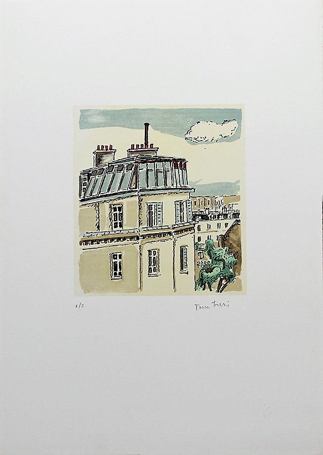 ORFEO TAMBURI, Senza titolo, Litografia colorata a mano, Dim. 50x35, Al verso: esemplare N° X/2 in basso a a sinistra, timbrato a secco "Fondazione d' Arte Poleschi" Lucca e firmato in basso a destra, Opera senza cornice