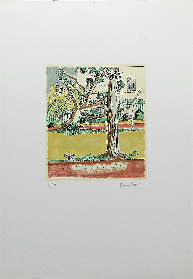 ORFEO TAMBURI, Senza titolo, Litografia colorata a mano, Dim. 50x35, Al verso: esemplare N° 96/99 in basso a sinistra, timbrato a secco "Fondazione d' Arte Poleschi" Lucca e firmato in basso a destra, Opera senza cornice
