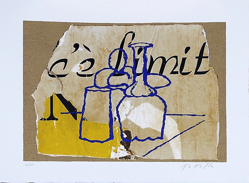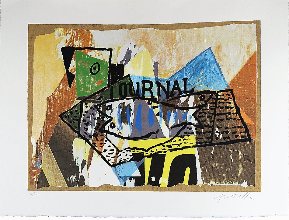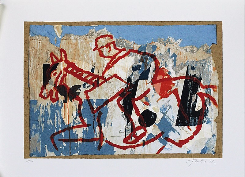 - MIMMO ROTELLA, "Il giornale di Picasso", 2000, Serigrafia originale del maestro Mimmo Rotella stampata su carta Moulin du Gué da 320 gr, Dim. 60x80, Tiratura in cento esemplari da 1 a 100 più venti numeri romani, Stampa realizzata da Alberto Serighelli, Arte 3, Milano nel Settembre 2000, Opera appartenente al ciclo "Omaggio ai Grandi Maestri", Al verso: esemplare n° 61/100 in basso a sinistra, firmato in basso a destra, Opera senza cornice