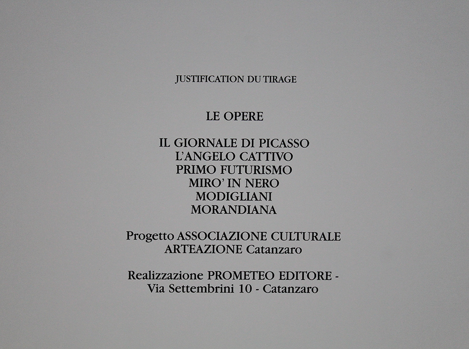 - MIMMO ROTELLA, "Mirò in nero", 2000, Serigrafia originale del maestro Mimmo Rotella stampata su carta Moulin du Gué da 320 gr, Dim. 80x60, Tiratura in cento esemplari da 1 a 100 più venti numeri romani, Stampa realizzata da Alberto Serighelli, Arte 3, Milano nel Settembre 2000, Opera appartenente al ciclo "Omaggio ai Grandi Maestri", Al verso: esemplare n° 61/100 in basso a sinistra, firmato in basso a destra, Opera senza cornice MIMMO ROTELLA, "Modigliani", 2000, Serigrafia originale del maestro Mimmo Rotella stampata su carta Moulin du Gué da 320 gr, Dim. 80x60, Tiratura in cento esemplari da 1 a 100 più venti numeri romani, Stampa realizzata da Alberto Serighelli, Arte 3, Milano nel Settembre 2000, Opera appartenente al ciclo "Omaggio ai Grandi Maestri", Al verso: esemplare n° 61/100 in basso a sinistra, firmato in basso a destra, Opera senza cornice