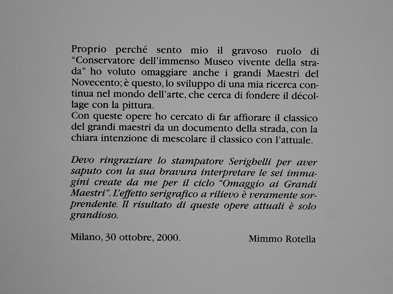 MIMMO ROTELLA, "Omaggio ai grandi Maestri del '900", 2000