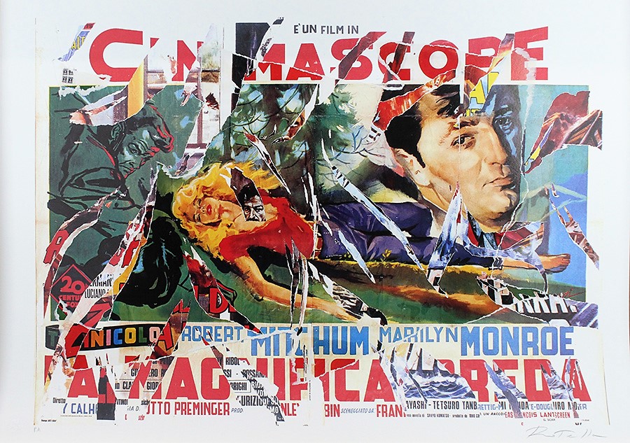 MIMMO ROTELLA, Senza titolo, Serigrafia, Dim. 100x70, Al fronte: timbro a secco "Fondazione Rotella" Milano e tiratura P.A. in basso a sinistra, firmato in basso a destra, Opera senza cornice