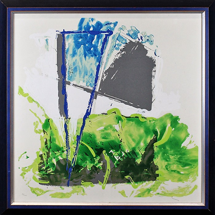 MARIO SCHIFANO, Senza titolo, Serigrafia, Dim 70x70, Al fronte: esemplare N° 43/200 in basso a sinistra e firmato in basso a destra, Opera con cornice