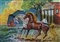 GIOVAN FRANCESCO GONZAGA, "I corsieri di Giasone", 2001, Serigrafia su tela materica stampa a 28 colori, Dim. 50x70, Opera pubblicata su catalogo "Serigrafie 2001/2002" di Giovan Francesco Gonzaga pag.2 Edizioni d'Arte "Torcular", Al verso: timbro di Giovan Francesco Gonzaga e timbro con edizione MMVII "Arte", Al fronte: esemplare n° 31/250 in basso a sinistra e firmato in basso a destra, Solo telaio