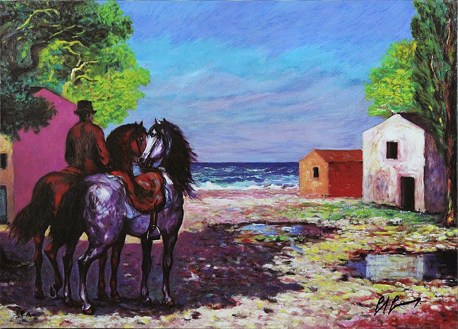 GIOVAN FRANCESCO GONZAGA, "Mattino in Maremma", Serigrafia su tela, Dim. 50x70, Al verso: timbro di Giovan Francesco, Al fronte: esemplare n° P.A. in basso a sinistra e firmato in basso a destra, Solo telaio