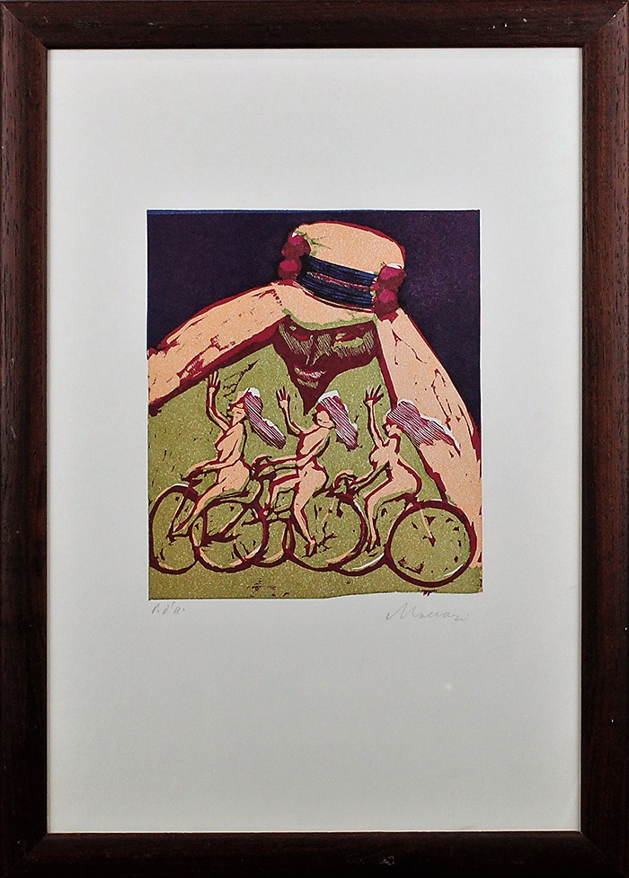 MINO MACCARI, Senza titolo, Anni '80, Litografia su cartoncino, Dim 50x34, Al fronte: esemplare N° P.D.A. in basso a sinistra e firmato In basso a destra, Opera con cornice