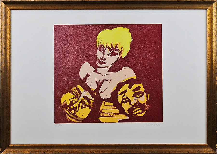 MINO MACCARI, Senza titolo, Anni '80, Litografia su cartoncino, Dim 34x50, Al fronte: esemplare N° P.D.A. in basso a sinistra e firmato In basso a destra, Opera con cornice