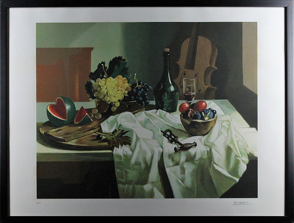 GIOVAN BATTISTA DE ANDREIS, "L' autunno che verrà", Serigrafia polimaterica a 36 colori, Dim. 62,5x50 (formato opera), Dim.60x80 (formato foglio), Opera con certificato di autenticità redatto da "Prospettive d'arte" Milano sul verso, Tiratura: 1/175 - I / LXXV, Al fronte: esemplare N° 80/175, timbro a secco " Prospettiva d' arte" in basso a sinistra, timbro a secco " De Andreis" e firmato in basso a destra, Con cornice